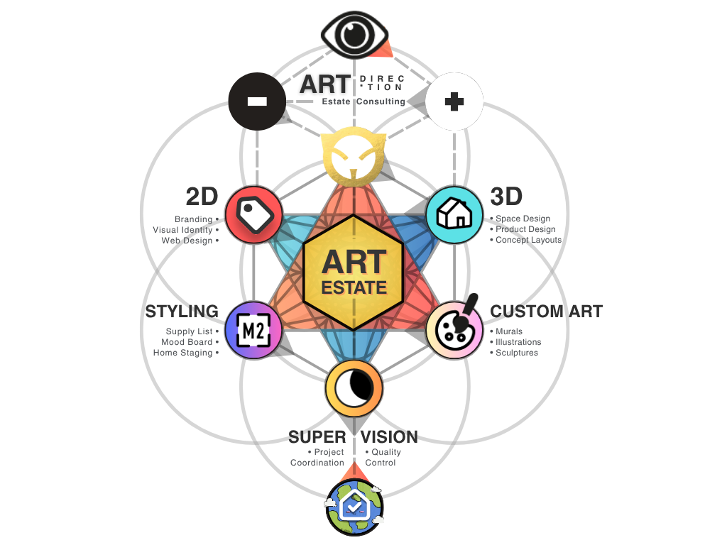 «Helping to envision, design and develop exclusive Dream Spaces. Bringing together Real Estate, Architecture, Interior Design, Branding and the Art of Living in One – total work of ART. Transforming random place into living Space with personality and Soul. Masterpiece, created uniquely for You. Her work is based on conscious materialization through the power of Sacred Geometry. Where ART is key tool to elevate any space, uplift its value, enhance lifestyle, boost productivity, literally heal and enlighten its inhabitants.»